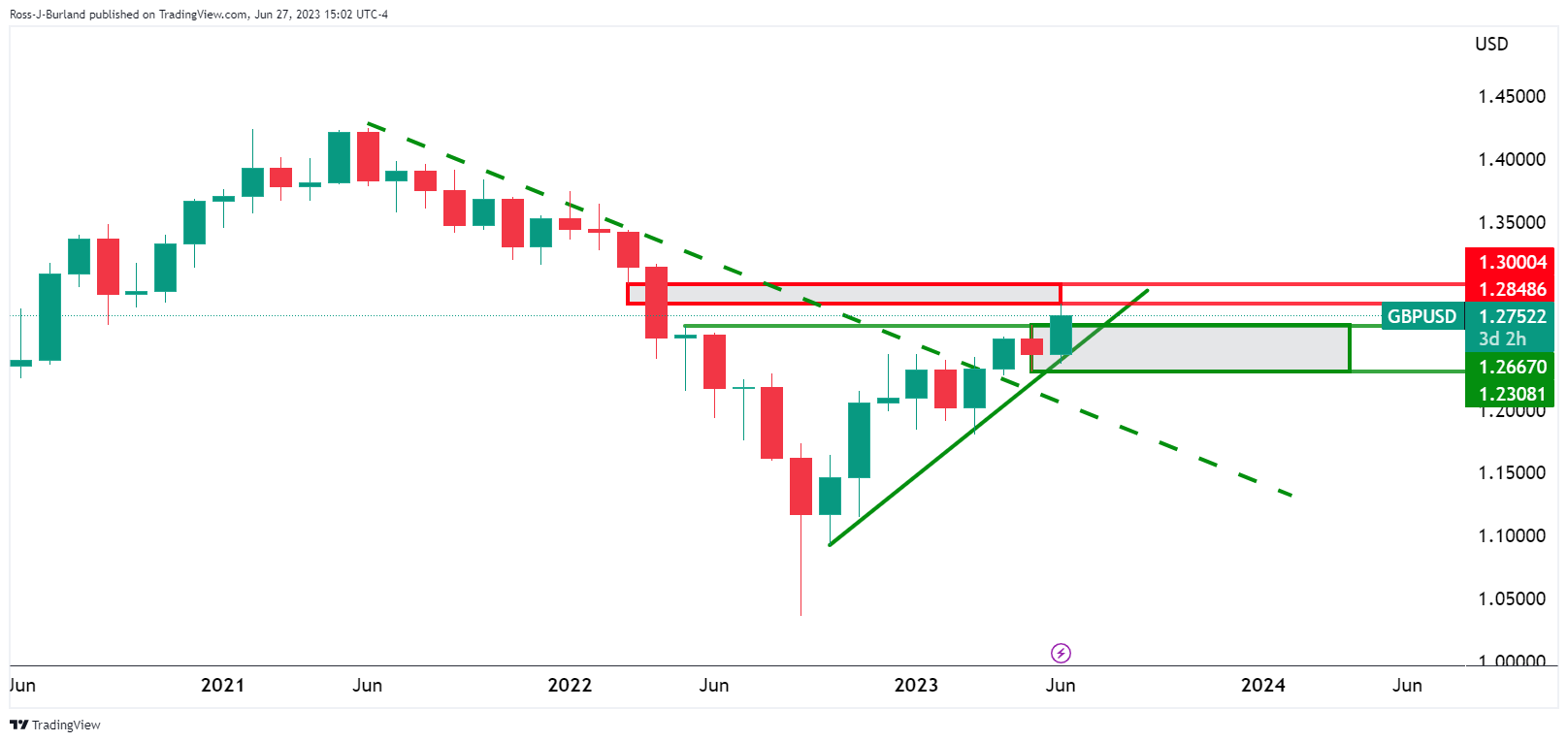 多头介入,英镑/美元目前存在大量的上行潜力,寻求突破1.2850,打𫔭通往1.3000的风险。