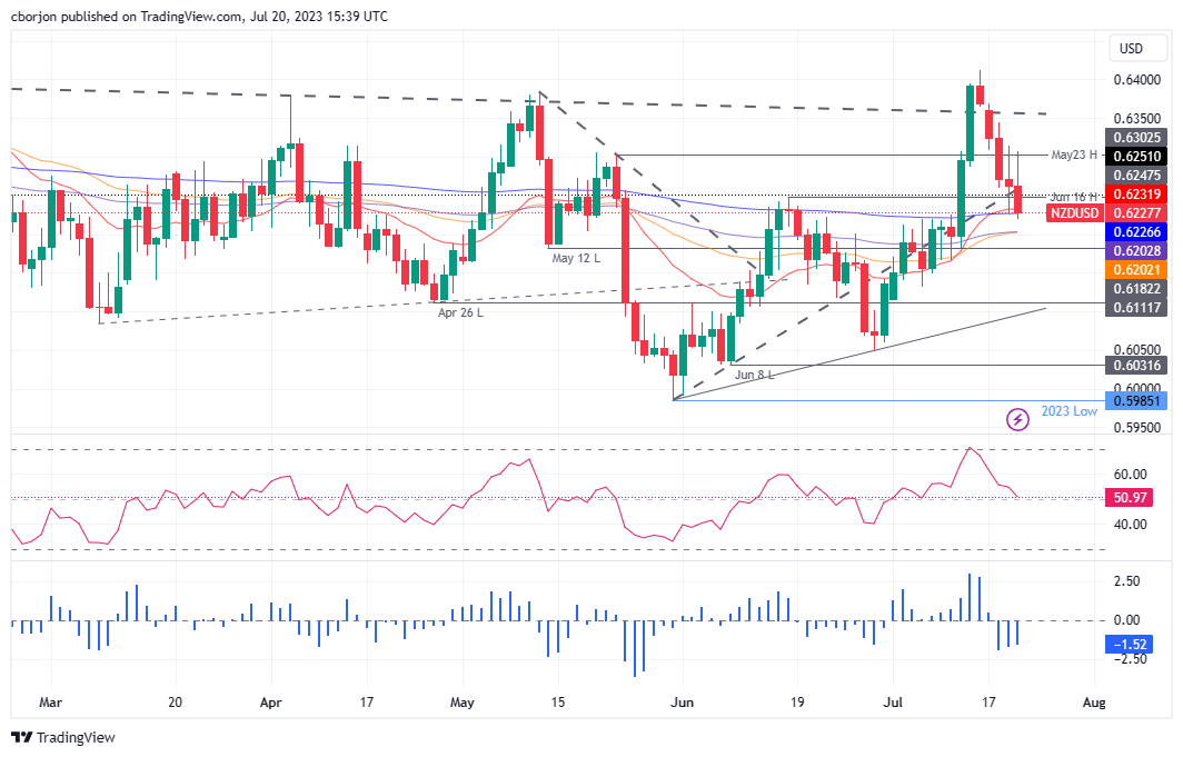 纽元/美元连续第五天下滑,因為美元(USD)因就业数据走强而走强,就业数据仍显示劳动力市场紧张,引髮美国国债收益率反应,并走高。因此,纽元/美元目前交投于 0.6229,跌幅為 0.4%,此前曾触及 0.6300 以上的日高点。