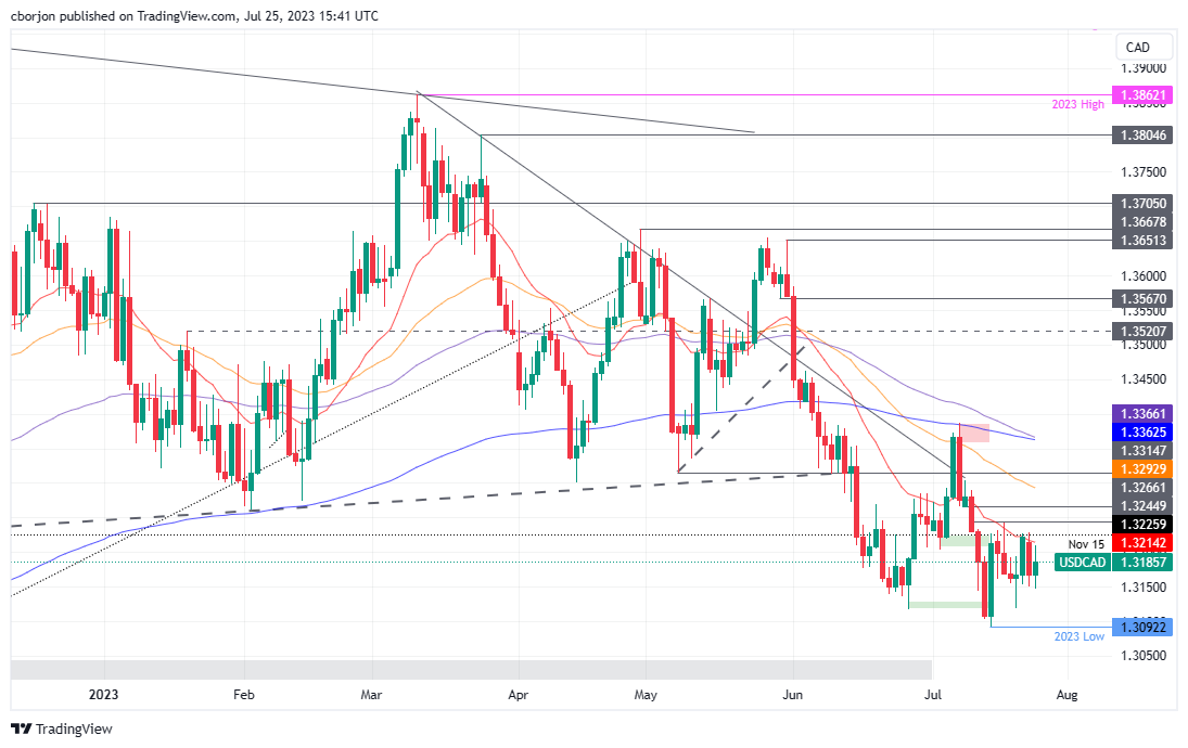 美元/加元日图显示,该货币对倾向下行。然而,自7月14日触及年内新低1.3092以来,美元/加元回升了0.78%。然而,该货币对仍低于7月18日的波动高点1.3243,该水平被视為短缐阻力位,一旦突破该水平,将可能為进一步上行铺平道路。