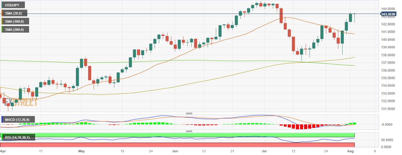 - 美元/日元在 142.22 低点获得支撑后,持平于 143.35。