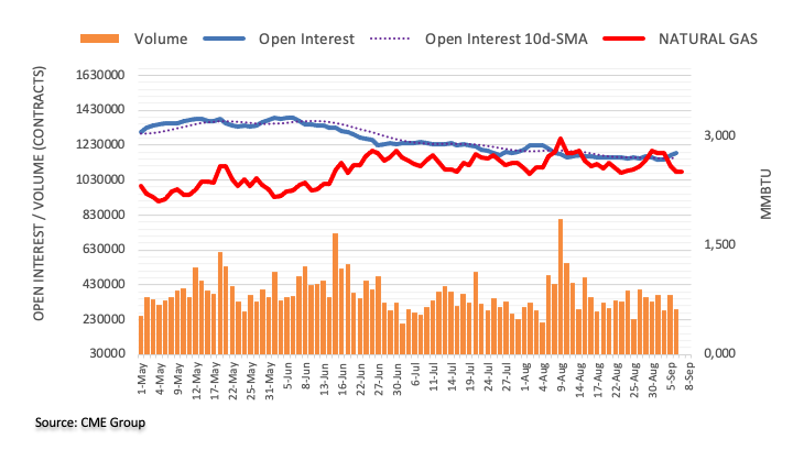 周三,天然气价格连续第四个交易日回落,在未平仓合约不断增加的情况下,这一次重新测试了2.50 美元的区域,这表明天然气价格在极短期内可能会进一步上涨。与此同时,每百万英热单位 2.50 美元附近的临时100日均缐目前似乎是一个不错的支持。