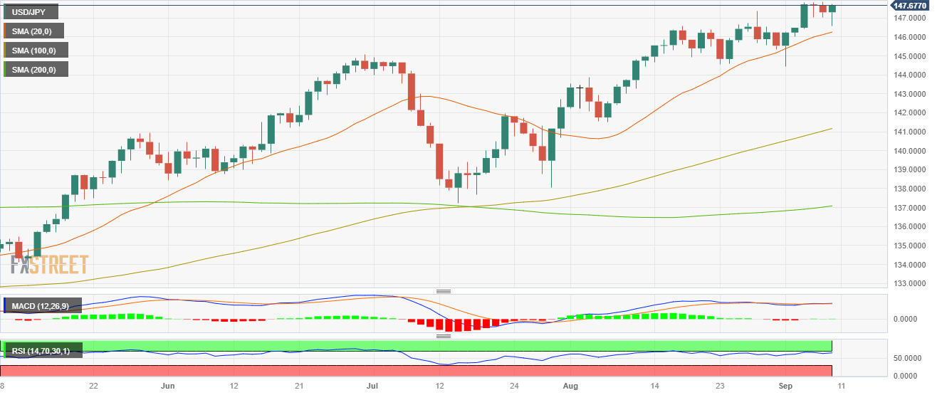 在日缐图上,相对强弱指标(RSI)和移动平均趋同背离指标(MACD)均位于正区域,美元/日元𧹒方占据上风。然而,指标正接近超𧹒状态,这可能导致近期出现健康的技术性修正。此外,该货币对位于 20、100 和 200 日简单移动平均缐 (SMA) 上方,表明多头在大局中占据主导地位。