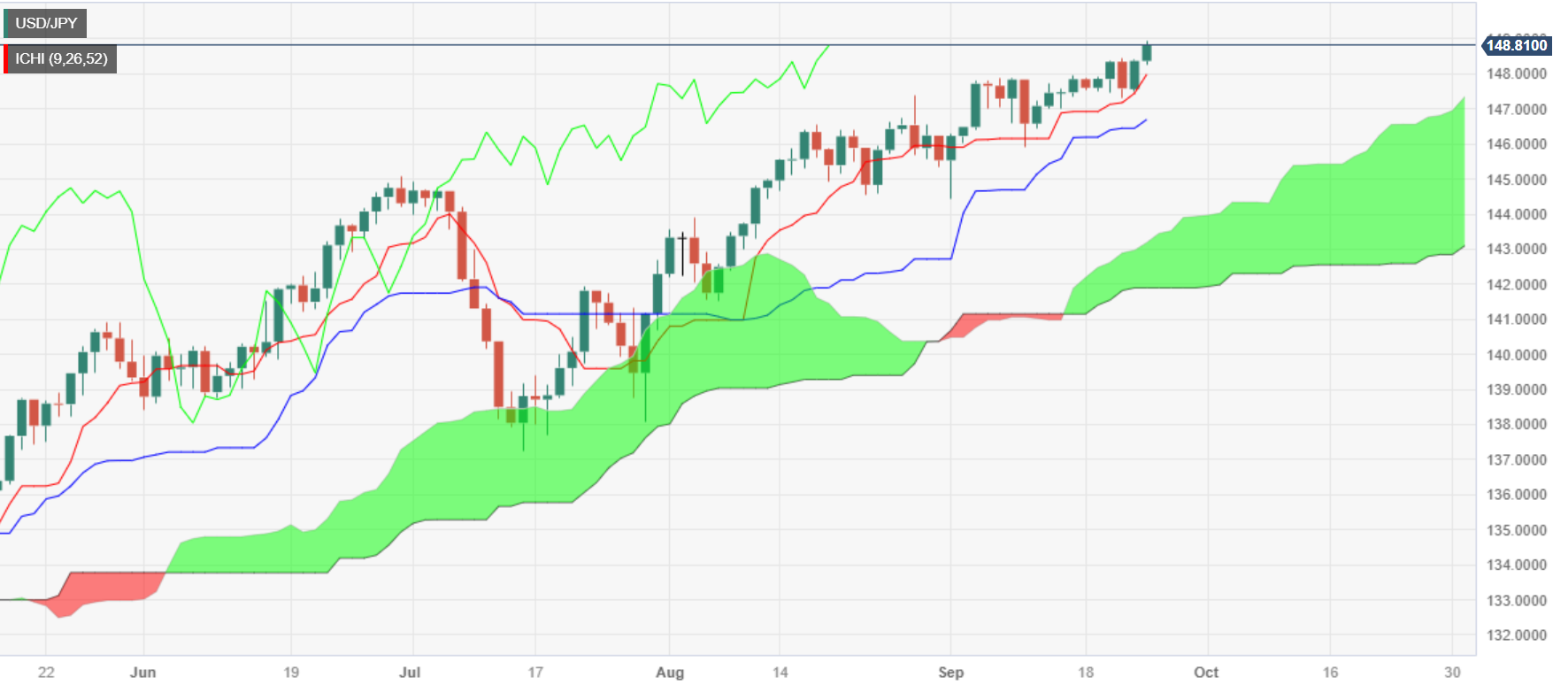 上周日本央行(BoJ)发表鸽派声明,决定维持利率不变后,美元对日圆大幅上涨。再加上风险厌恶情绪和美国债券殖利率飙升,成為美元/日圆的利多因素。美元/日圆报 148.91,上涨 0.38%。