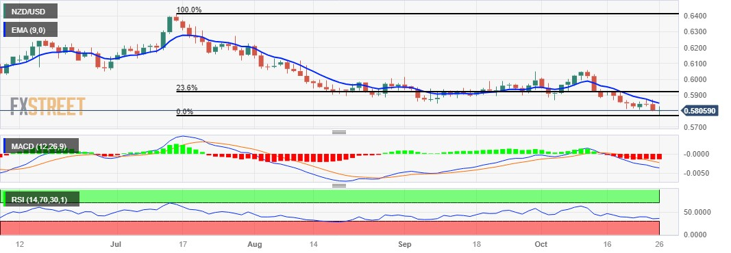 该货币对在 0.5800 心理关卡附近交易,然后是位于 0.5849 的九日指数移动平均缐(EMA),这是与 0.5850 关键水平交汇的关键阻力位。