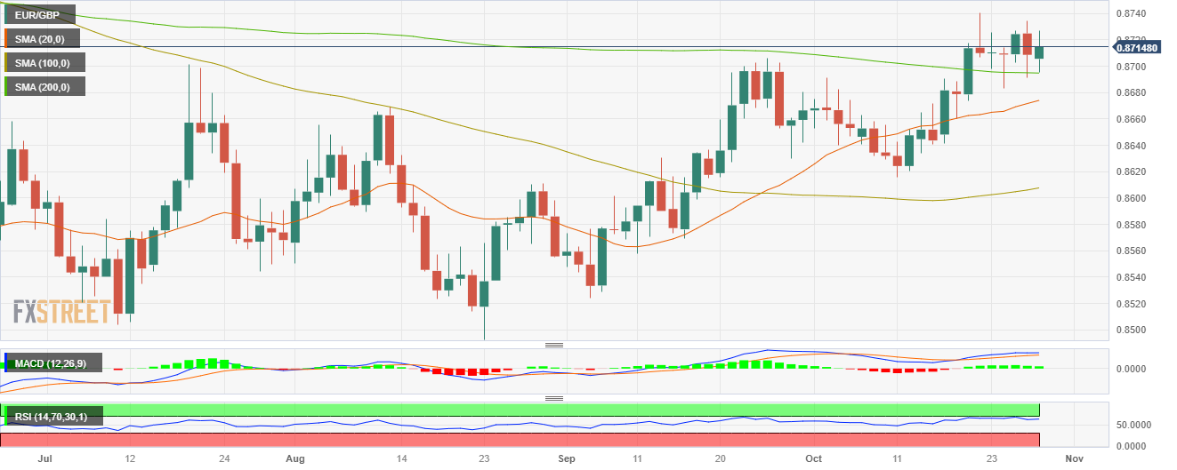 - 欧元/英镑在 0.8695 附近低点触底,随后反弹至 0.8715。