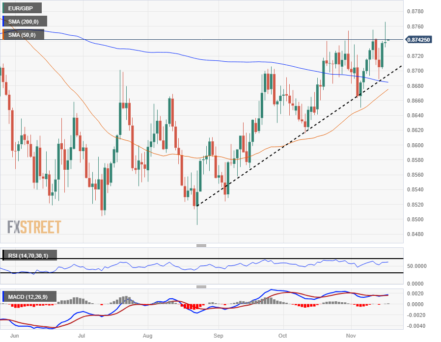 欧元兑英镑触及六个月高点,但随后下跌至 0.8750 附近