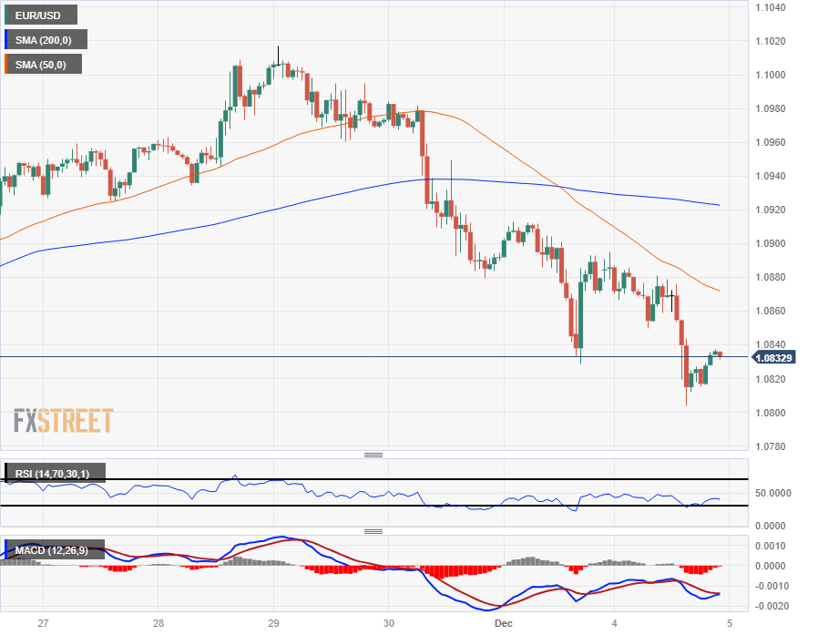 欧元兑美元试图守住 1.0800 上方,继周一回落后反弹有限