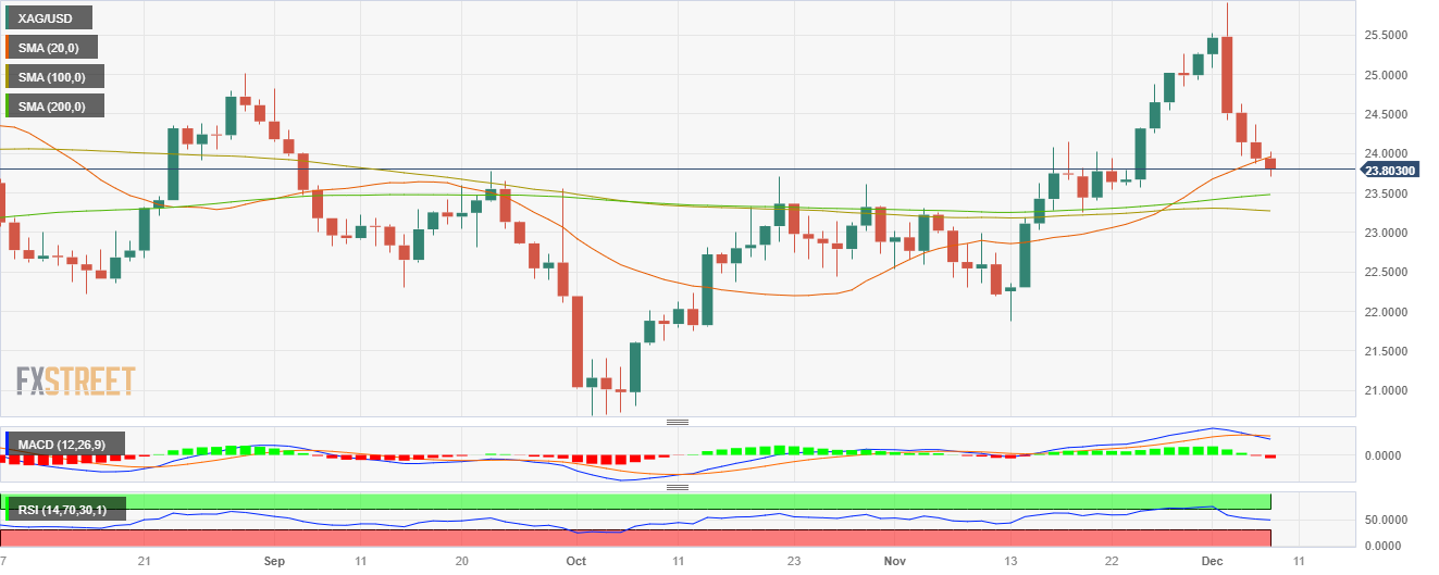 周四盘中,银价(XAG/USD)继续下跌,连续第三天收跌,跌至 23.75 美元。在美国失业金申请人数低于预期,美国殖利率上升之后,贵金属价格被推低。美元(USD)的稳定性进一步推动了贵金属价格的表现。