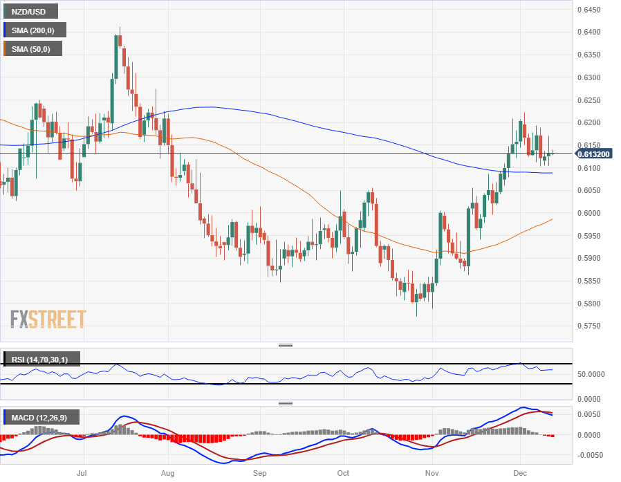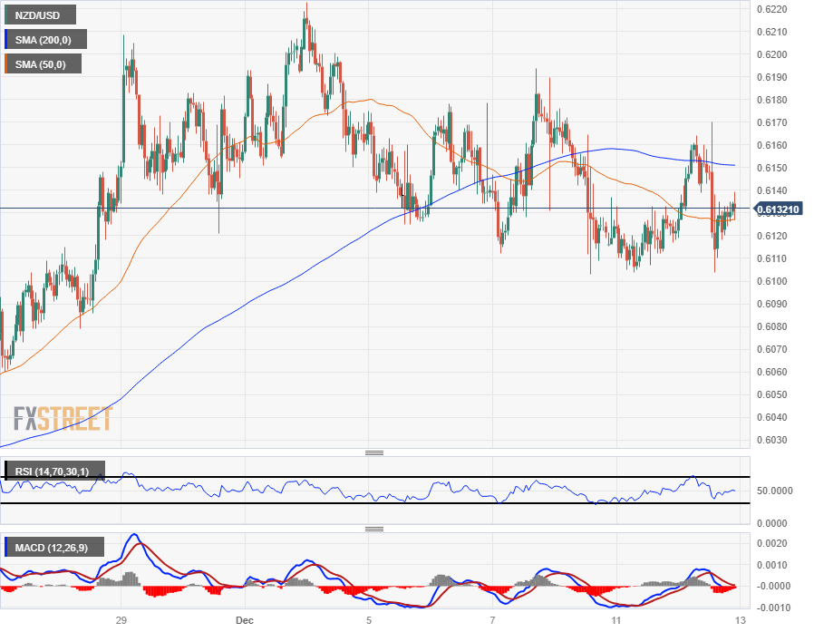纽元兑美元 0.6150 附近的 200 小时简单移动均缐(SMA),近期图表走势在很大程度上维持在区间震盪。