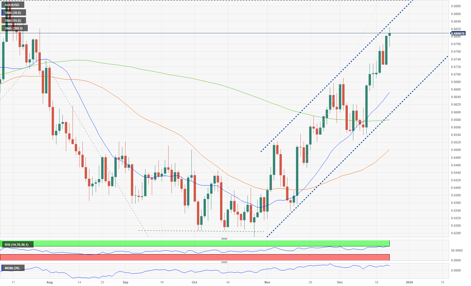 澳元兑美元在0.6800上方触及五个月高点后失去动能