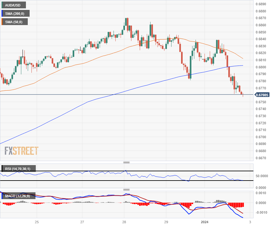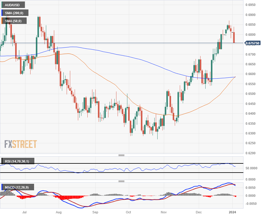周二澳元/美元维持跌势,跌破了200 小时简单移动均缐(SMA),这是澳元/美元自12 月中旬强劲上扬以来首次跌破该均缐,澳元/美元跌至两周低点0.6750 附近。