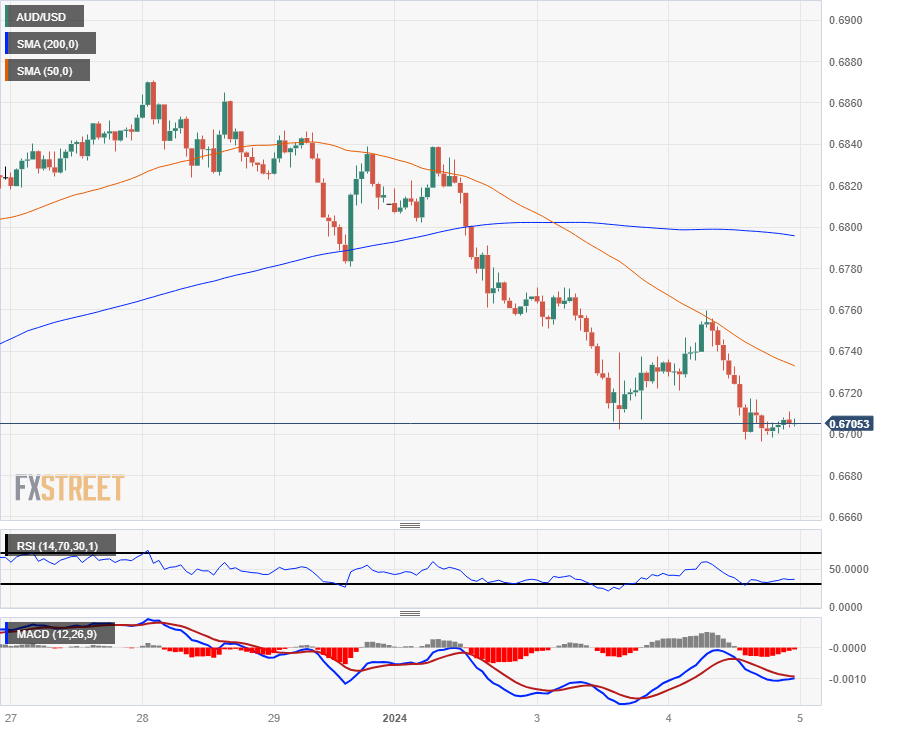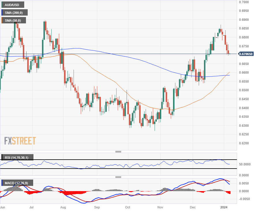 澳元已连续五个交易日收跌,从 12 月底的高点 0.6870 附近下跌了近 2.5%。