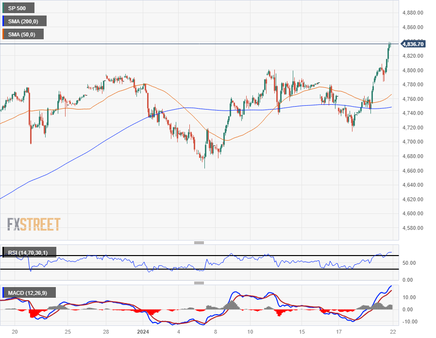 标准普尔 500 主要股指攀升了近 1.25%,创下历史新高,上周五报收于 4839.81 美元,当天上涨了 58.87 点。