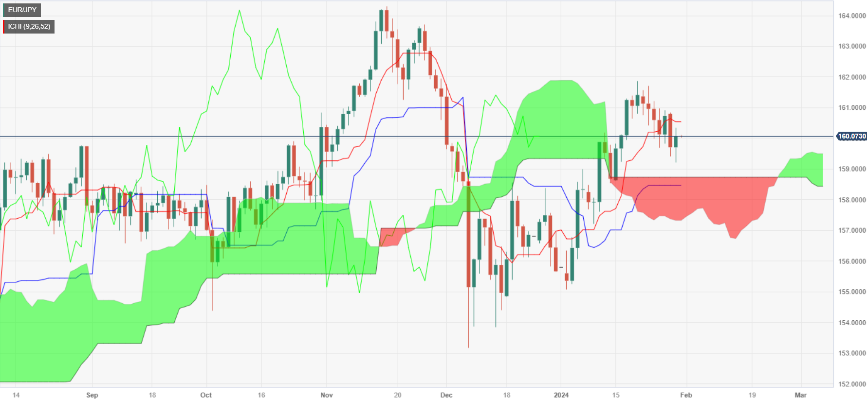- 技术分析表明,欧元/日圆有可能接近转换缐 160.54 ,161.00 和 1 月 19 日高点 161.87 构成关键阻力位。