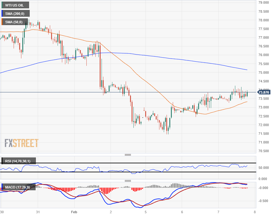 WTI 美国原油周三正试图收复 74.00 美元关口,但由于上周短期WTI油价暴跌至 71.50 美元后,油价继续回升,WTI油价仍在高位获得支撑。仍然处在 75.00 美元关卡附近的 200 小时简单移动平均缐(SMA)下方。