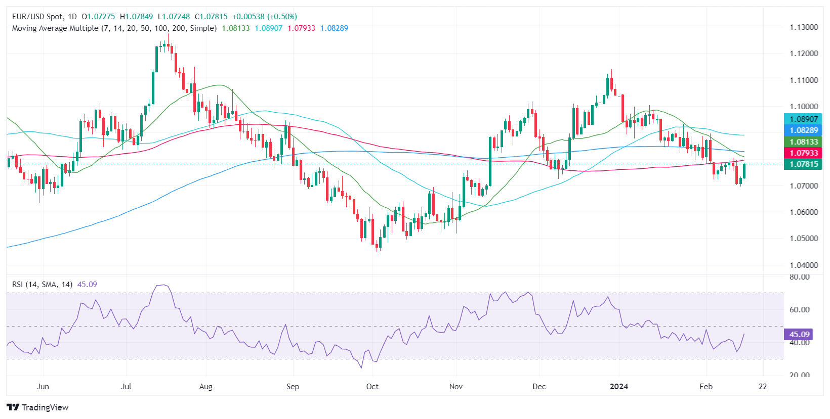 北美时段早盘,欧元兑美元汇率攀升,原因是美国零售销售报告不如预期,引发美国收益率下降,从而导緻美元下跌。欧元兑美元在触及 1.0723 的日低点后走高至 1.0784。