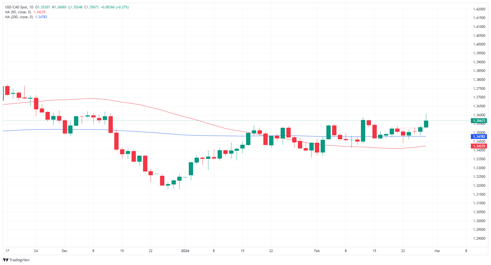 美元/加币周三早盘上扬至 1.3600 关口上方,但因美国公布的 国内生产总值(GDP)数据好坏参半而回落至近期的密集区。市场将转而关注周四的美国个人消费支出物价指数(PCE),这是联准会(FED)选择的通膨指标。
