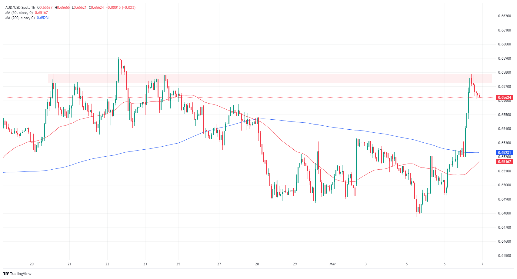 继联准会发表演说澳元/美元上涨至高点 0.6580,随后出现回落