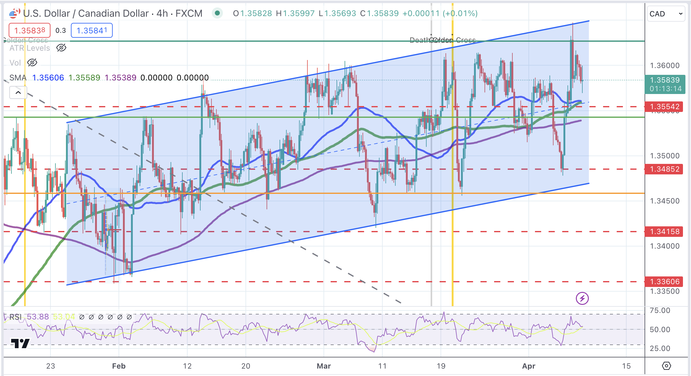 美元兑加币 4 小时图