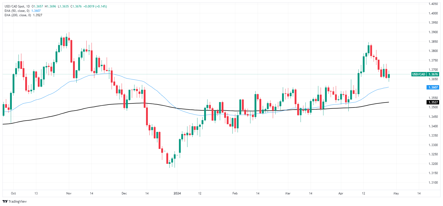 美元兑加币继续在 1.3700 和 1.3660 之间震盪,但下行波动进一步深入看跌区域。该货币对仍在 200 天指数移动平均缐(EMA)1.3527 的上方交投,但美元兑加元仍比上一波段高点 1.3850 附近下跌了 1.2%。
