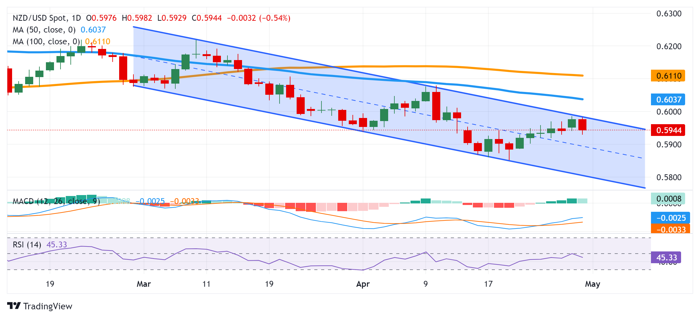 纽元兑美元价格分析:从两周高点回落,在美国数据公布前守在 0.5900 以上