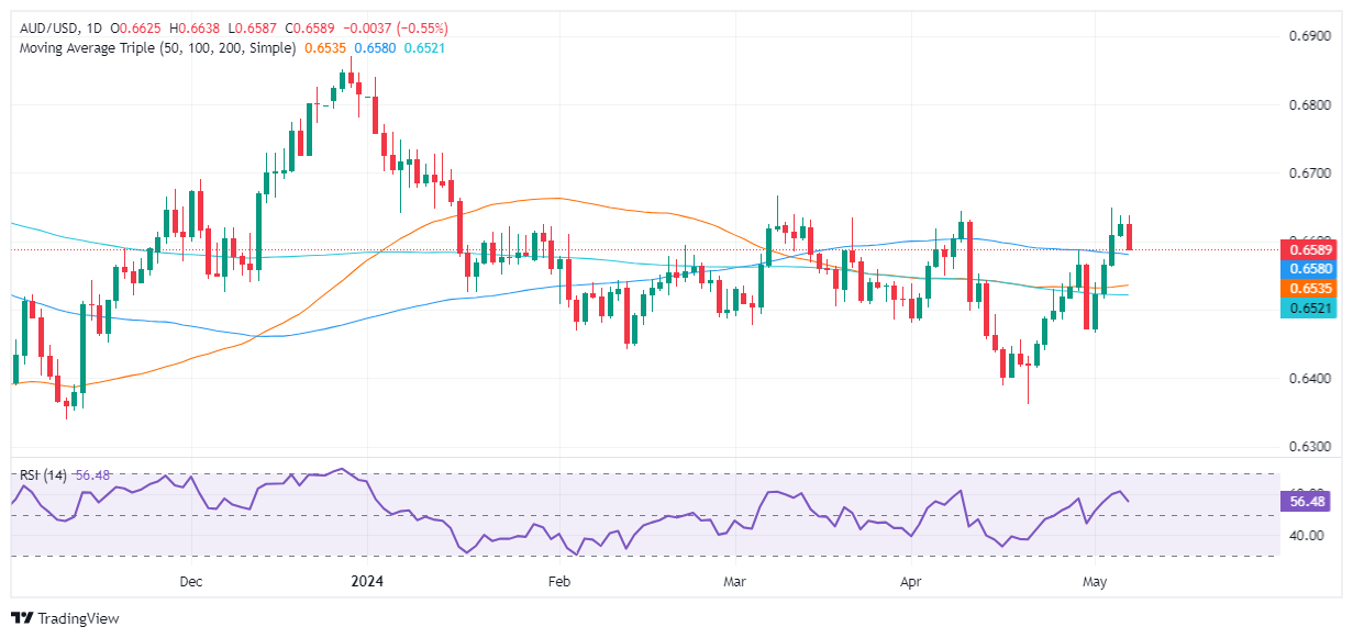 周二,继澳储行宣布维持利率不变的货币政策决定后,澳元兑美元下跌约0.42%。然而,这项决定被市场视為鸽派。因此澳元兑美元收盘接近当日低点,周三亚市𫔭盘后,澳元兑美元报 0.6591,下跌 0.09%。