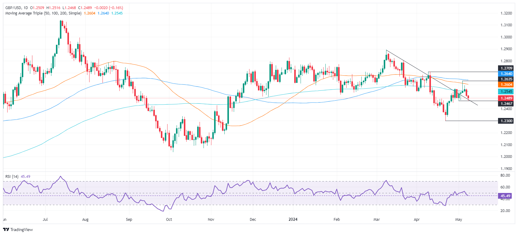 - 如果英镑/美元突破 1.2500,阻力位可能在 200-DMA (1.2543)、1.2594 和 5 月 3 日高点 1.2634。