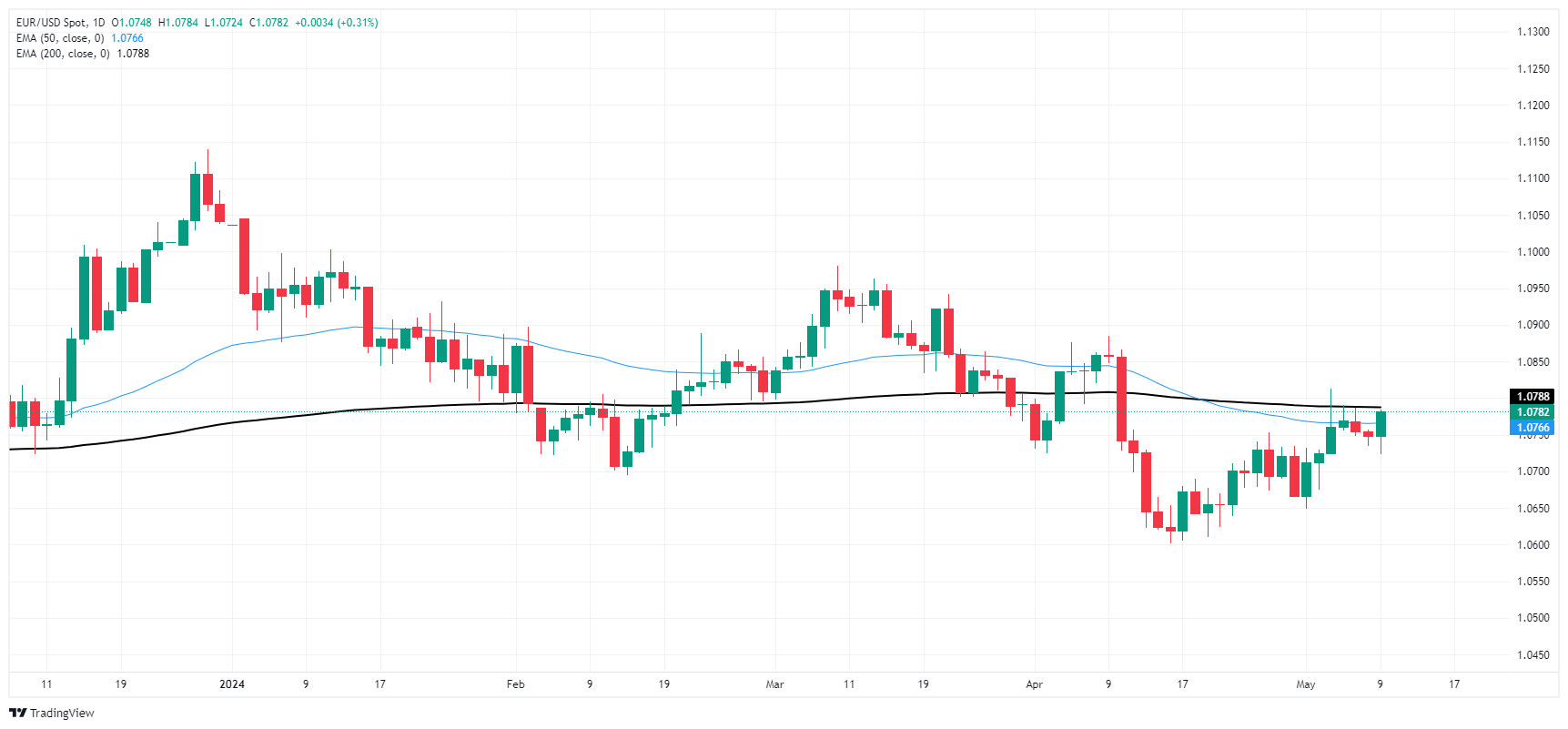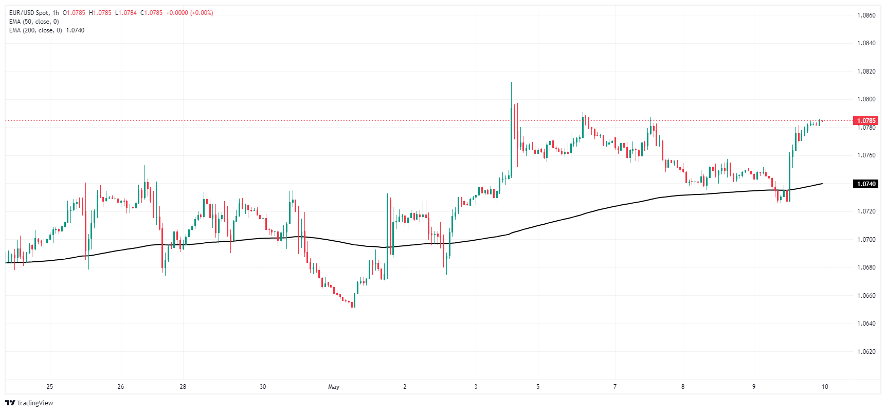 市场风险偏好回升,欧元兑美元上涨突破 1.0780