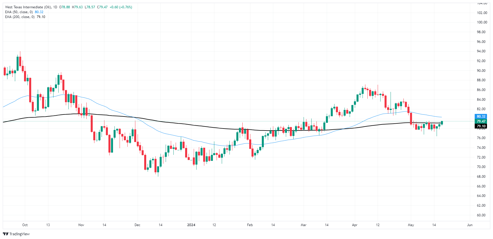 - 随著能源市场步步走高,WTI油价正上涨接近 80 美元。