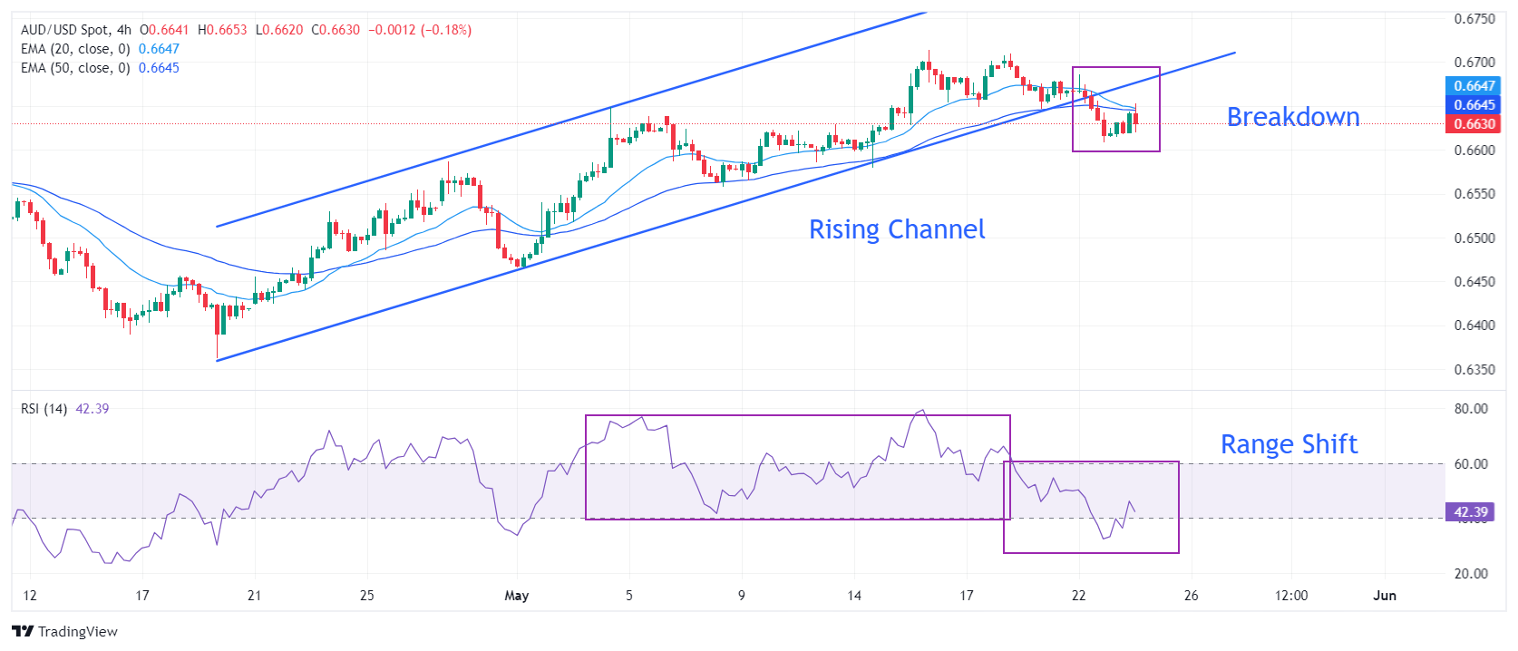 周四纽约时段,澳元兑美元从日内高点 0.6650 回撤。标准普尔全球公司(S&P Global)公布了乐观的美国 5 月采购经理人指数(PMI)初值报告,美元出现强劲𧹒盘,澳元资产因此承压。追踪美元兑六种主要货币价值的美元指数(DXY)收复了整个盘中跌幅,跳升至 104.90。