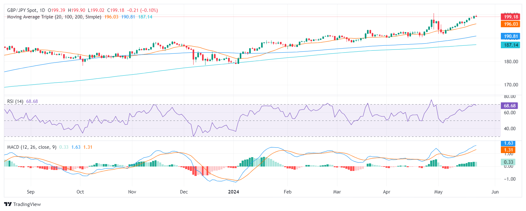 - 主要支撑位是位于 196.00 的 20 日均缐。