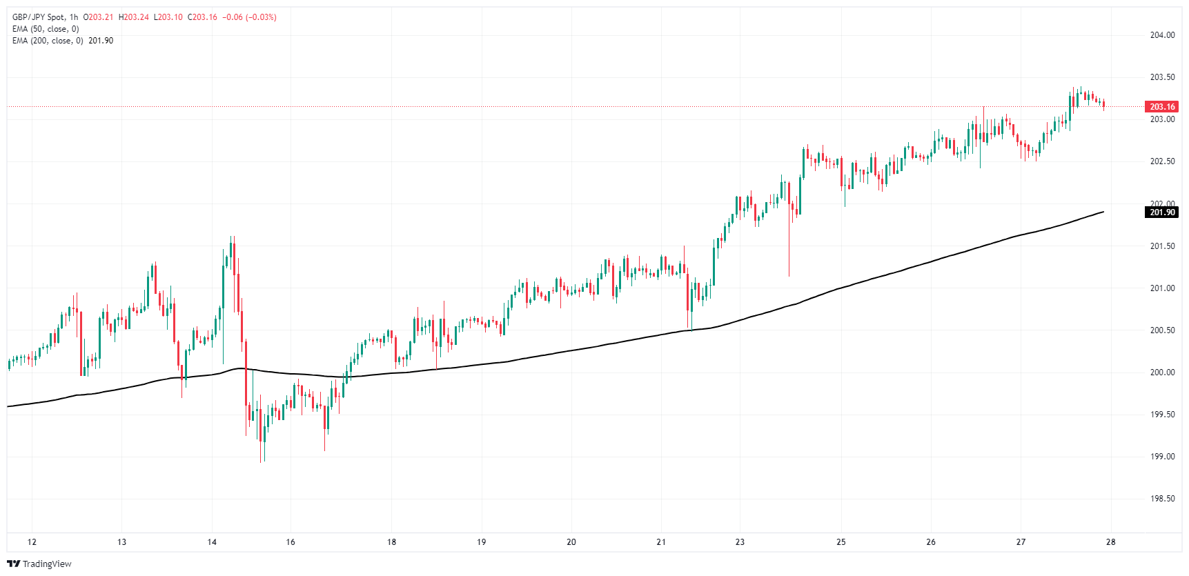 周四,日圆全盘震盪走低,英镑/日圆触及 16 年新高 203.39。周四稍早日本零售销售上扬,但未能引发日圆回升,因為日圆交易员们正密切关注周五早盘将公布的日本东京消费者物价指数(CPI)通膨最新数据。