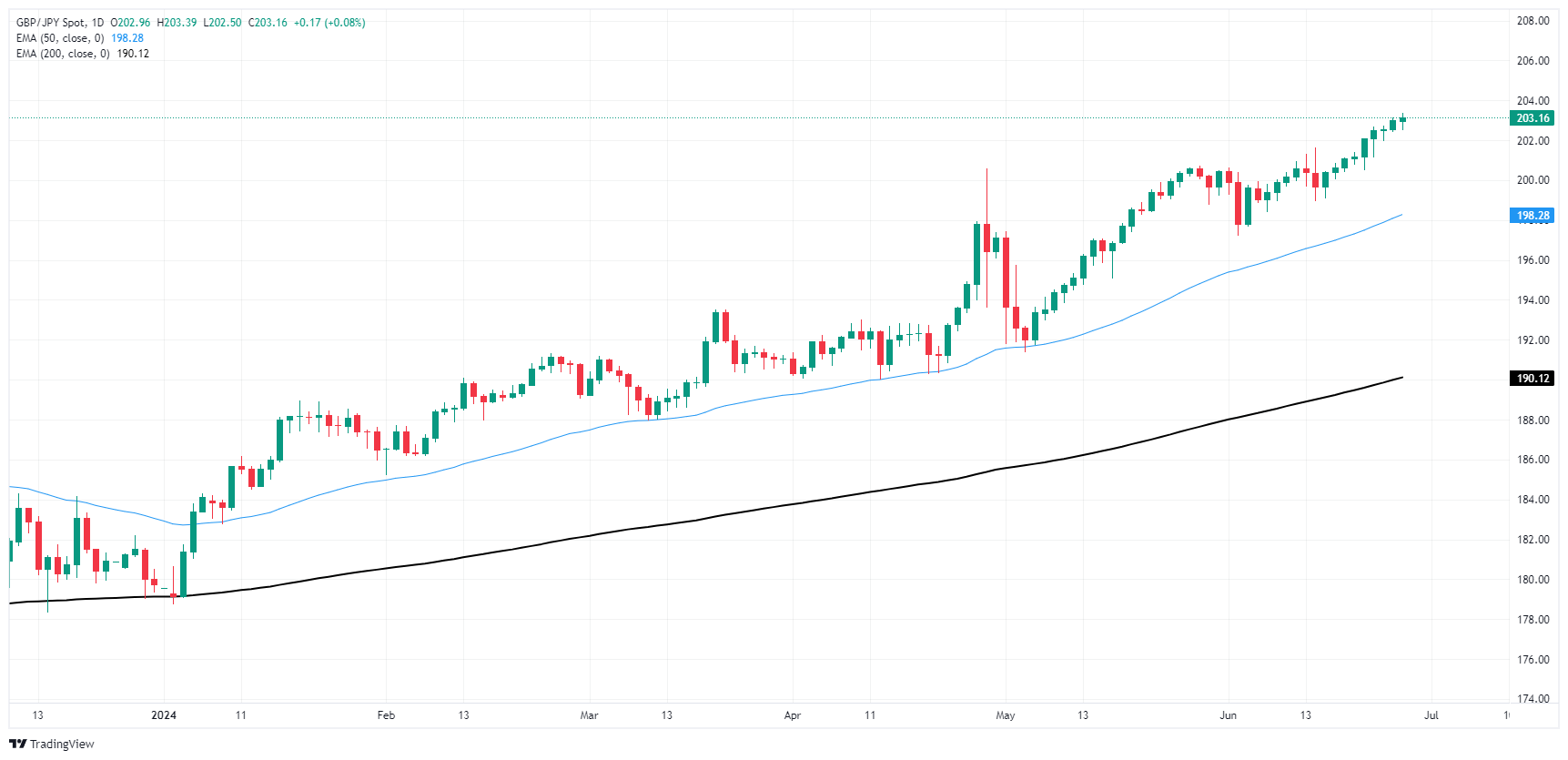 英镑/日圆继单向看涨行动中连续五天刷新 16 年高点,英镑/日圆同样连续九个交易日收绿,继续攀升至多年高点。