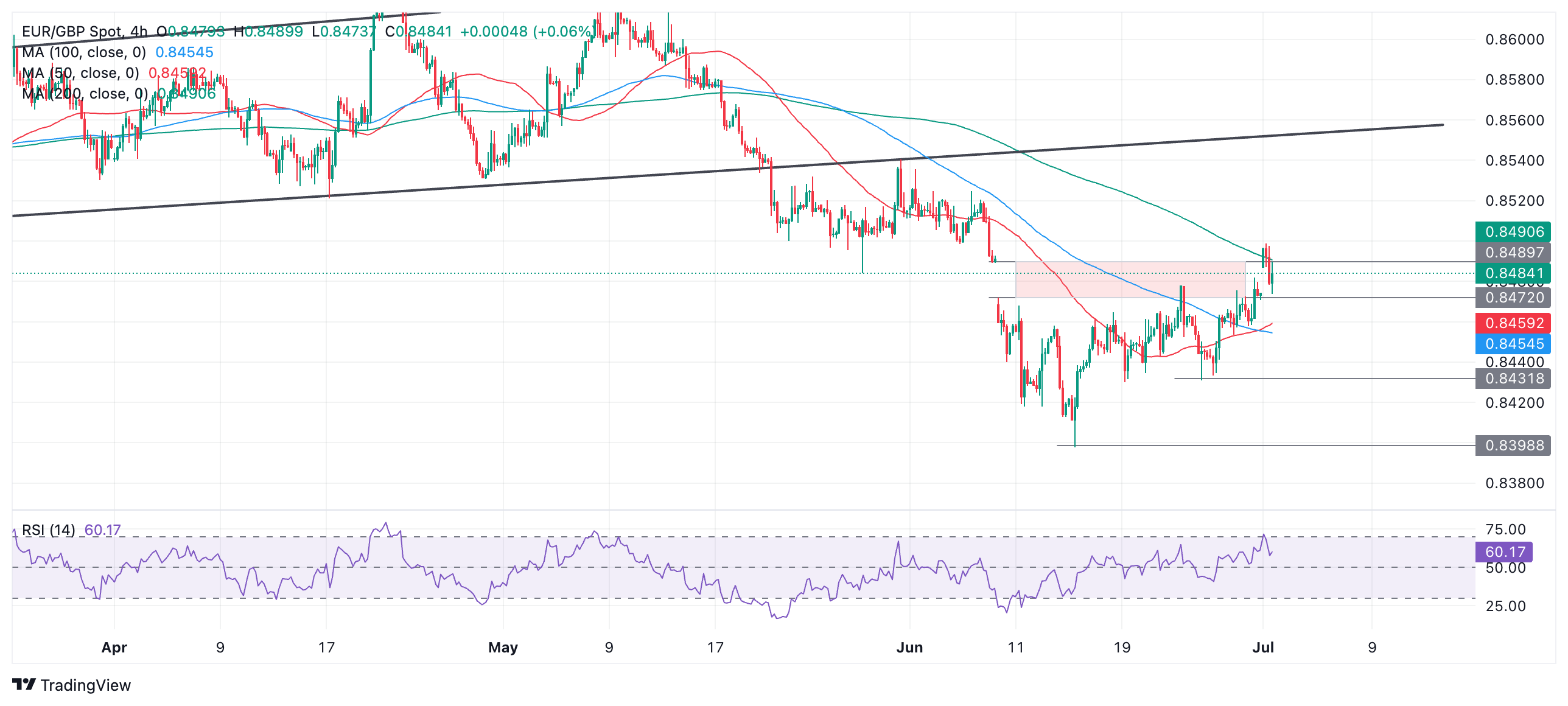 - 欧元/英镑已经上涨并填补了 0.8472 和 0.8490 之间的价格缺口。