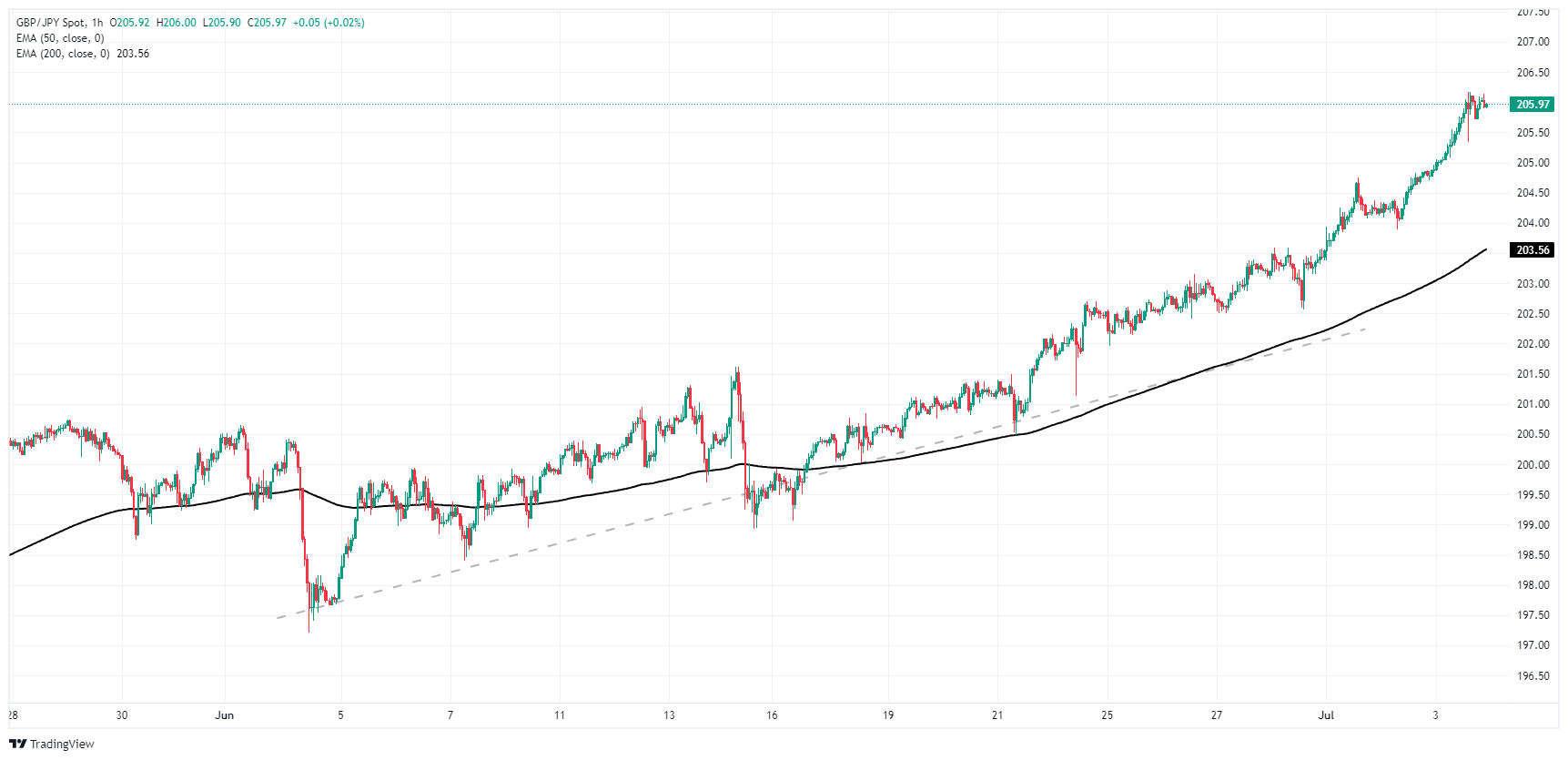 英镑/日圆看涨动能进一步加快,周三提振英镑/日圆突破206.00关口,连续第13个交易日收涨。