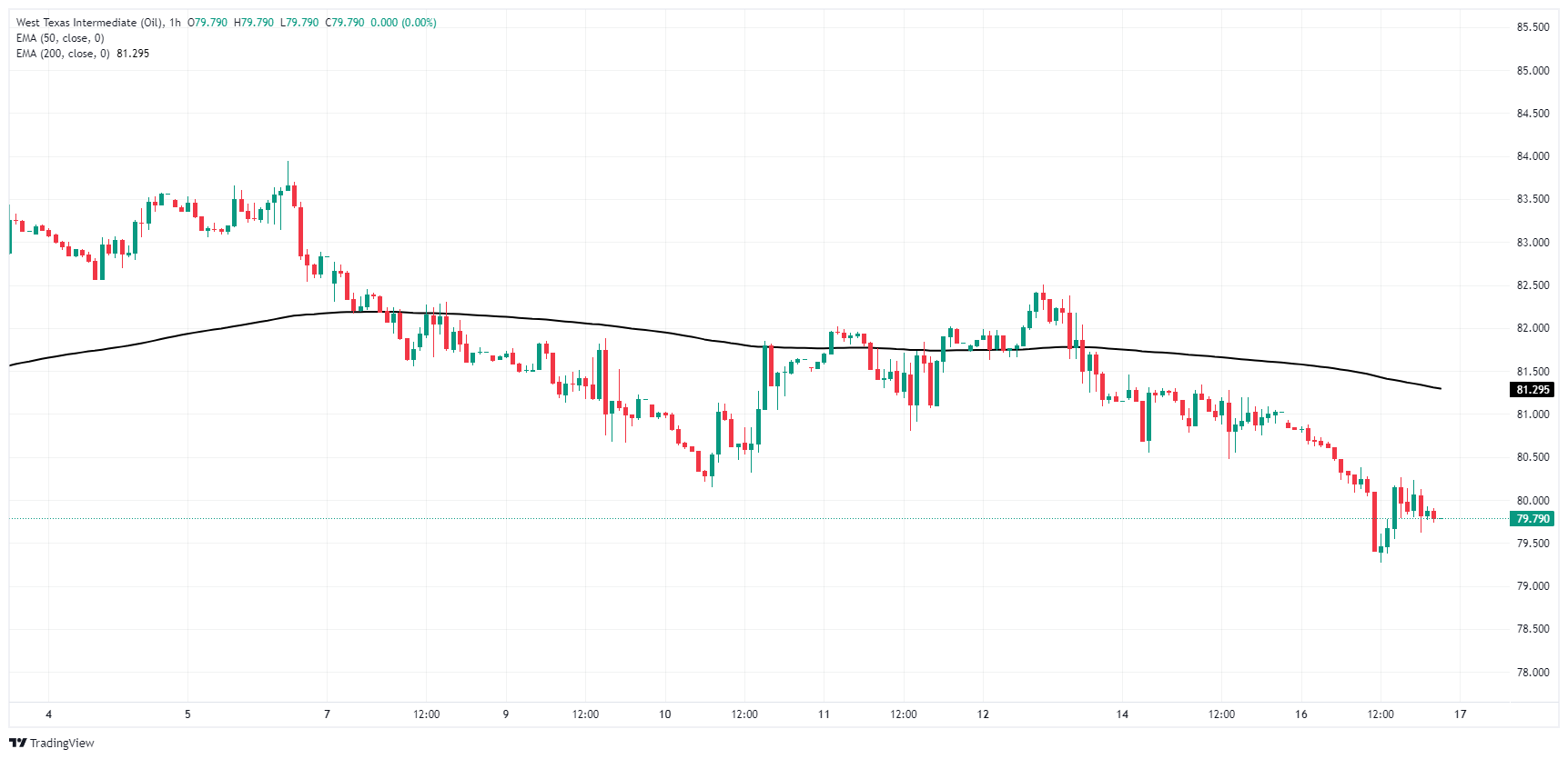 - 由于原油下跌,WTI油价跌破 80.00 美元。