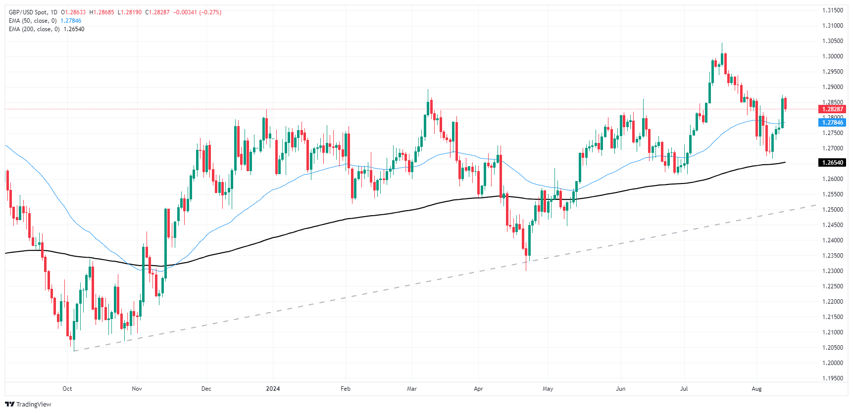周三,英镑兑美元回档并跌破 1.28500,此前大西洋两岸的消费者物价指数(CPI)通膨率均有所下降。由于英国国内生产毛额(GDP)成长数据和美国零售销售数据即将公布,英镑兑美元在本周后半段将处于不利地位。