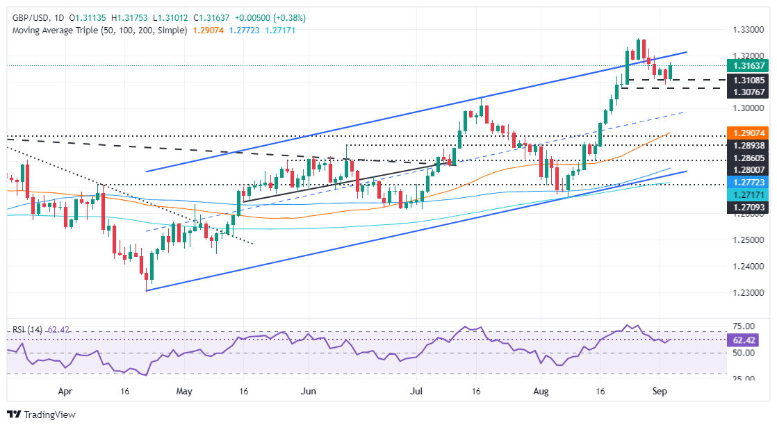 英镑从一周低点 1.3087 处获得良好反弹,并在周三北美时段的早盘交易中上涨,兑美元汇率攀升超过 0.22%。 美国疲软的就业数据增加了联准会降息 50 个基点的可能性,并支撑英镑兑美元走高,目前交投于 1.3163。