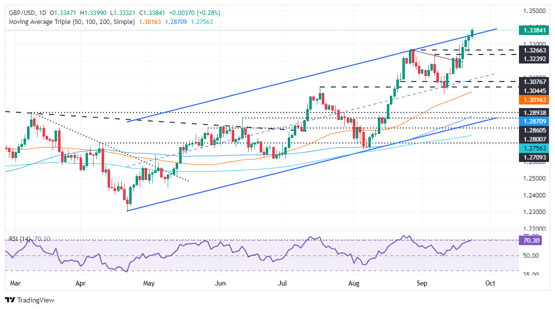 - 英镑/美元突破了上升通道的顶部,接近年内高点 1.3398。