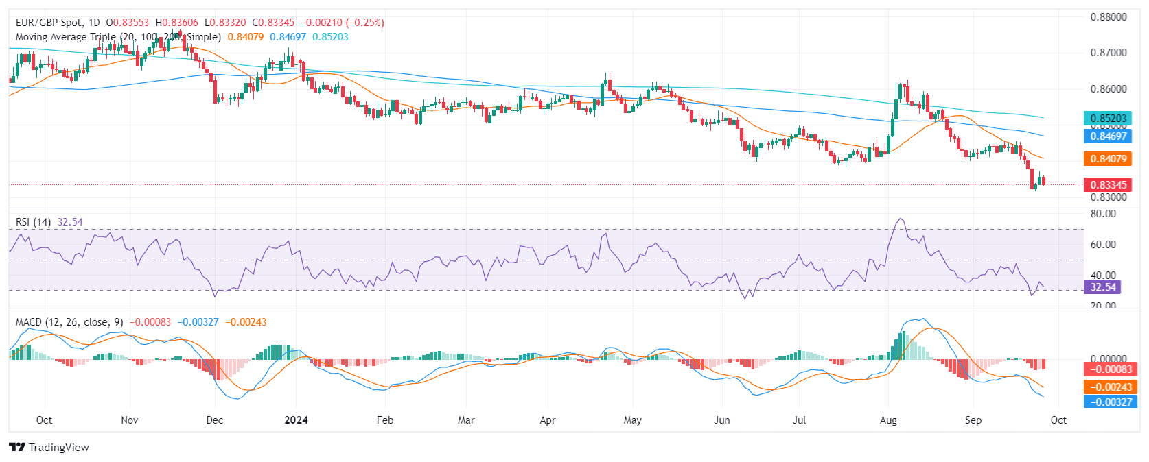 欧元/英镑价格分析:货币对在 0.8330 附近徘徊,看跌前景不变