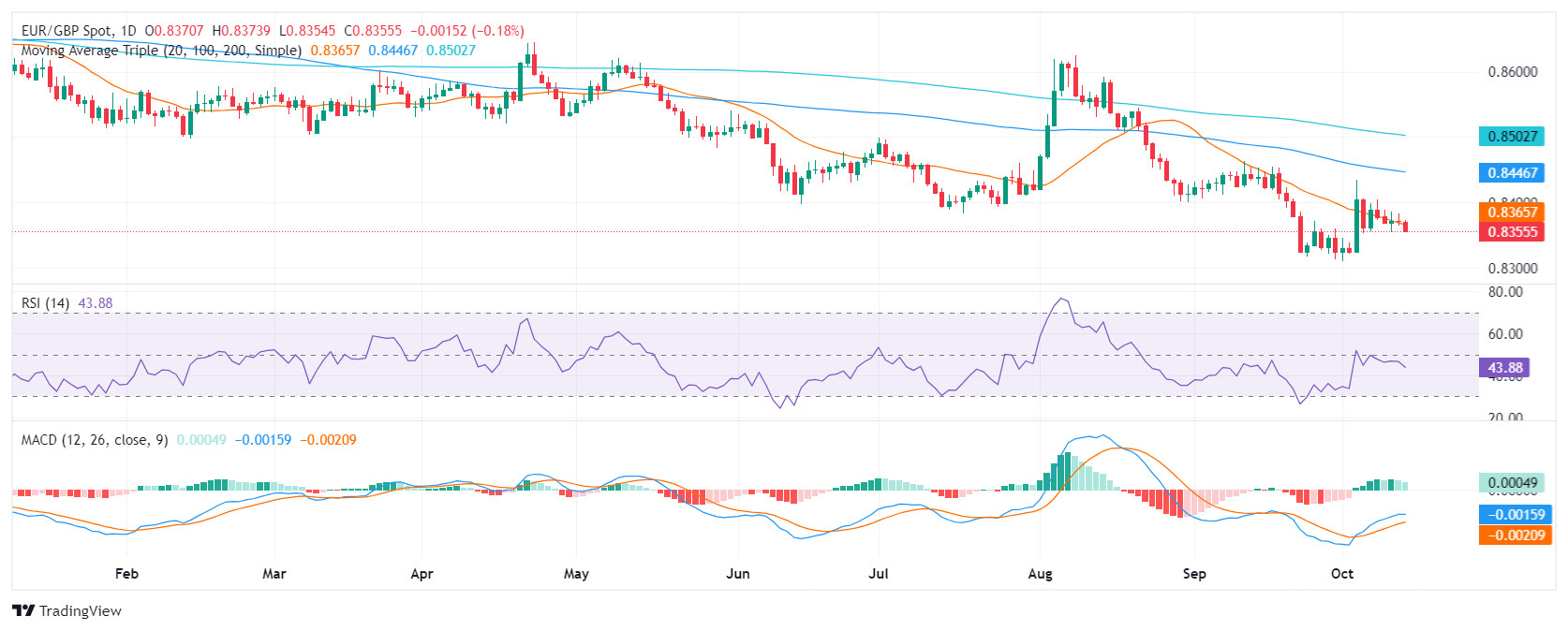 周一盘中,欧元/英镑下跌并在 0.8350 附近走低,跌破 20 日均缐 (SMA),这一走势恶化了技术前景并强化了短期看跌者的偏向