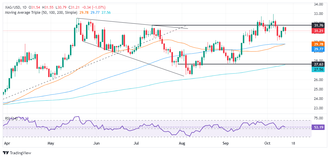 白银价格预测:白银兑美元下跌,但仍坚守 31.00 美元