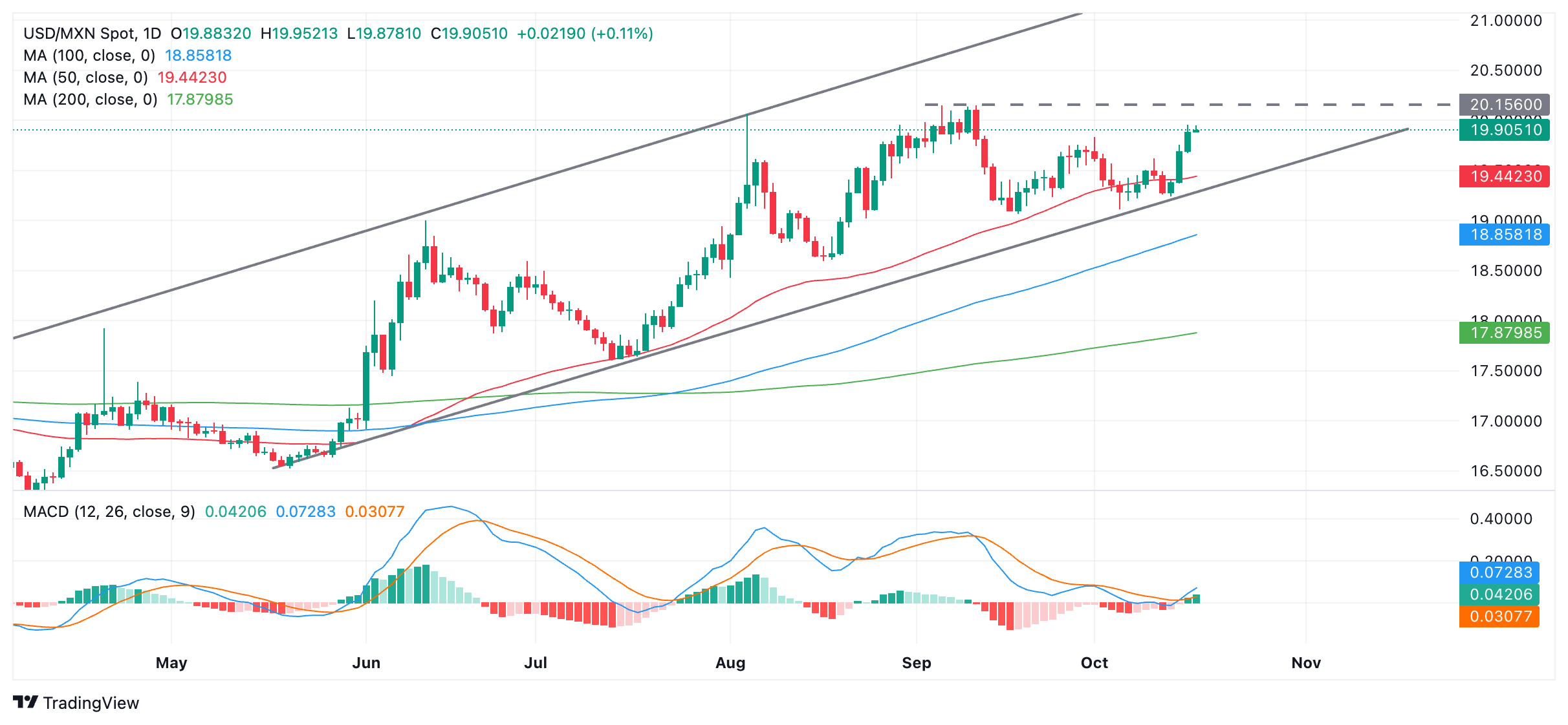 技术分析:美元/墨西哥比索延续自上升通道底部的回升走势