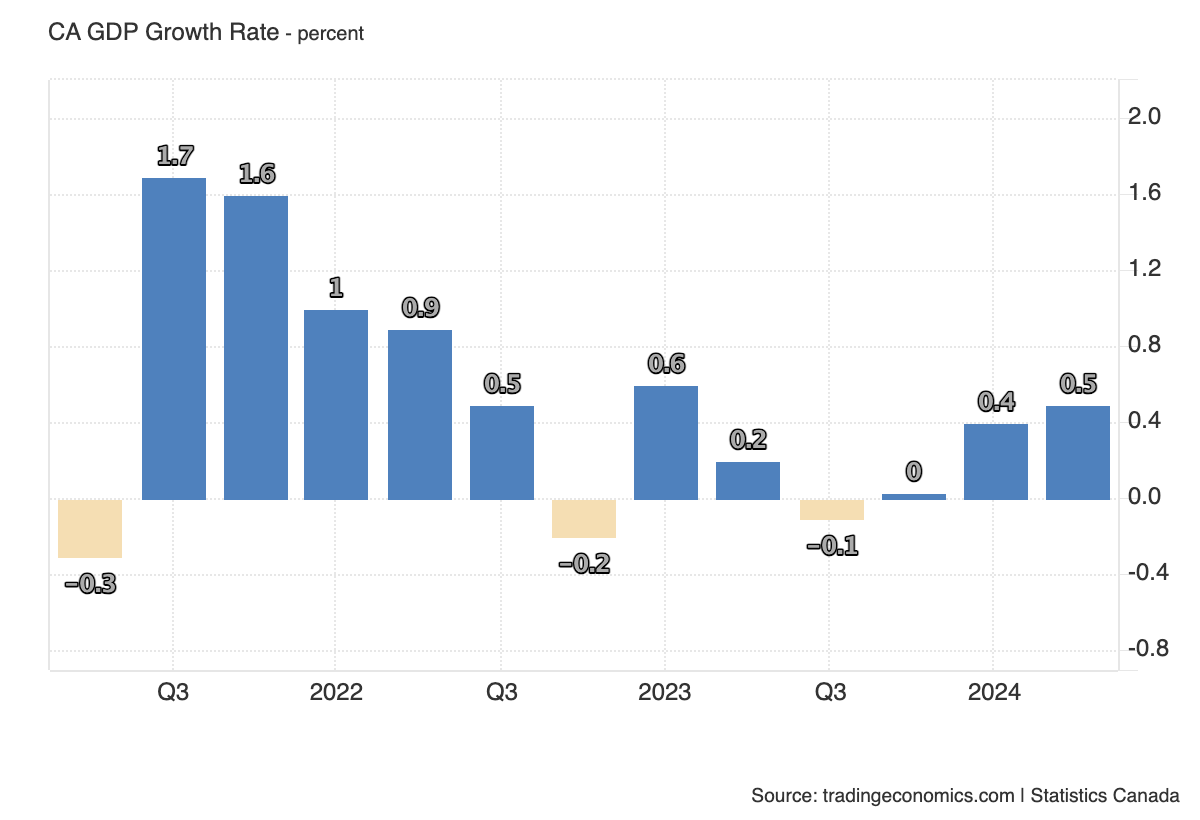 此外,加拿大的 GDP 看起来已经从 2023 年底的低谷中回升,当时加拿大几乎陷入衰退。 2024 年第二季度,加拿大经济与上一季相比成长了 0.5%,高于第一季的 0.4%。