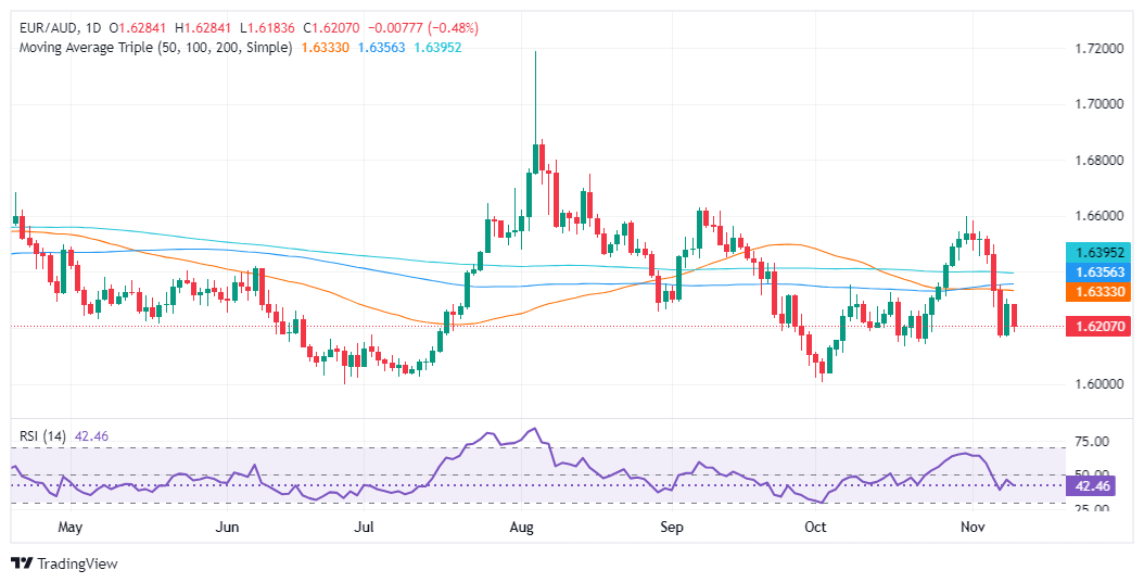 - 欧元/澳元技术面显示可能进一步下行,关键支持位在 1.6100 附近。