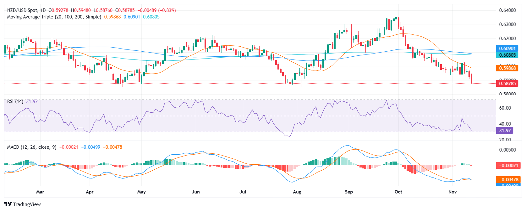 - 周三纽元/美元下跌 0.80%,目前交投于 0.5880 附近。