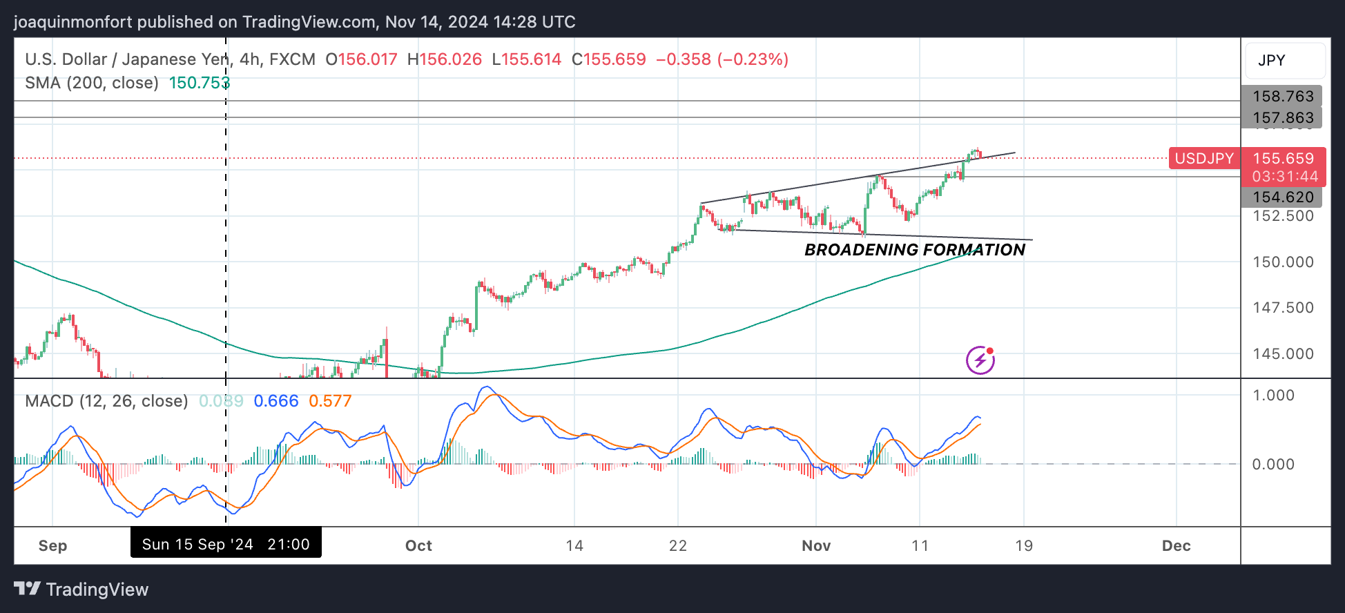 - 美元/日元可能已形成具有看跌潜力的扩大形态。