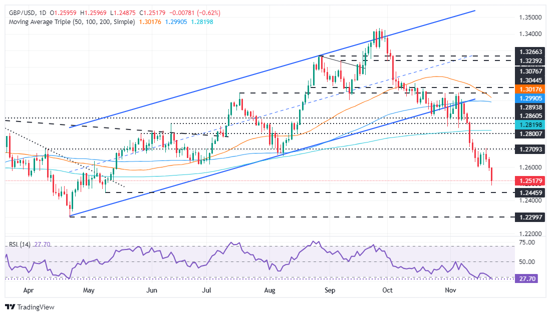 英镑/美元价格预测:因令人失望的数据而下跌,跌至 1.2500