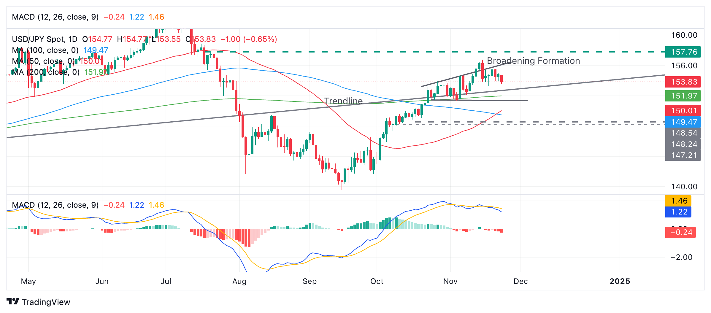 美元/日元价格预测:在可能的看跌扩大形态中下跌