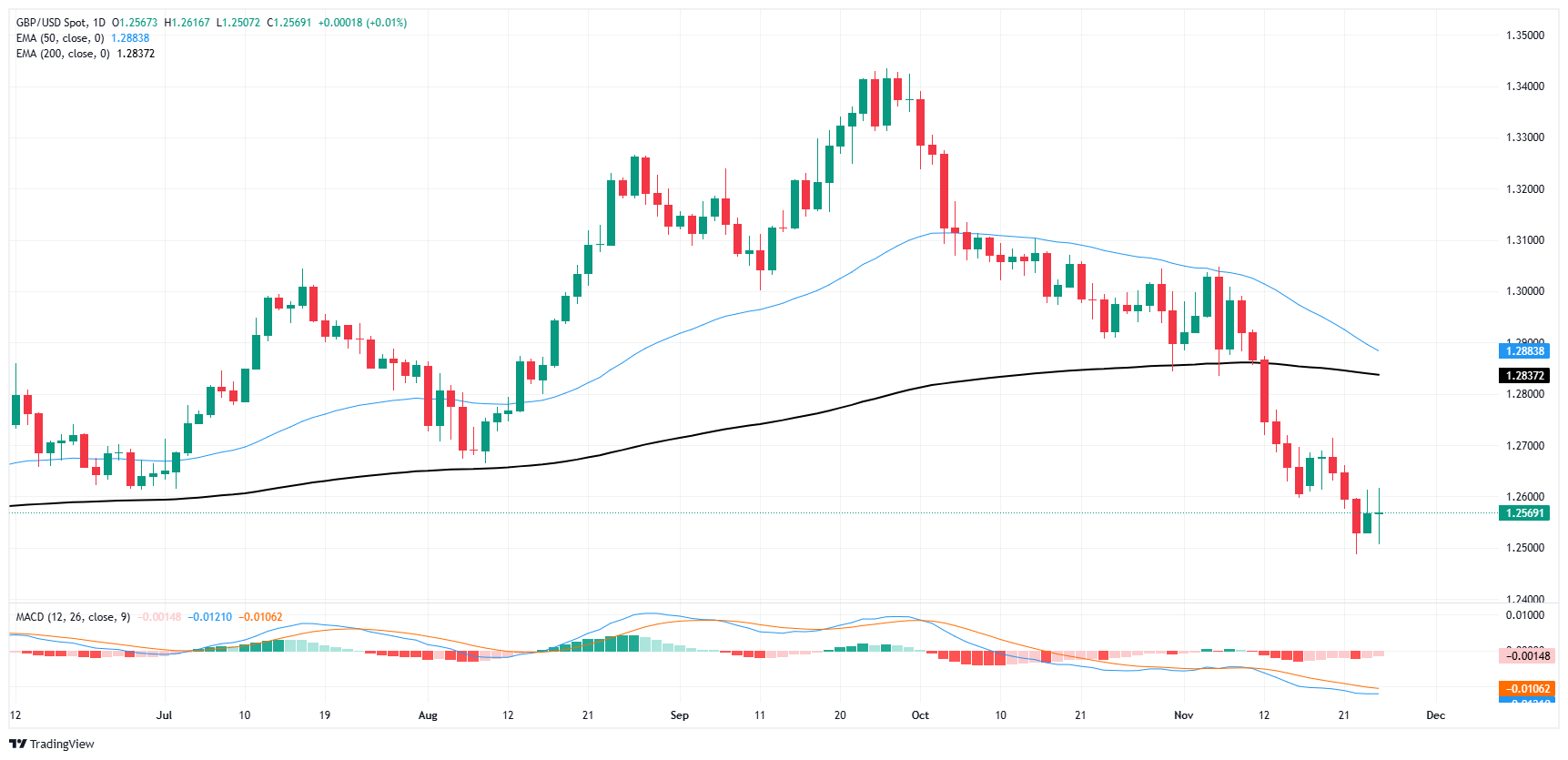 英镑/美元周二震盪于 1.2600 下方,处在震盪区间内,难以明确方向。欧美两地经济数据让英镑/美元交易员们按兵不动,但即将公布的美国通货膨胀数据可能会在周四美国感恩节假期前引发新一轮波动。